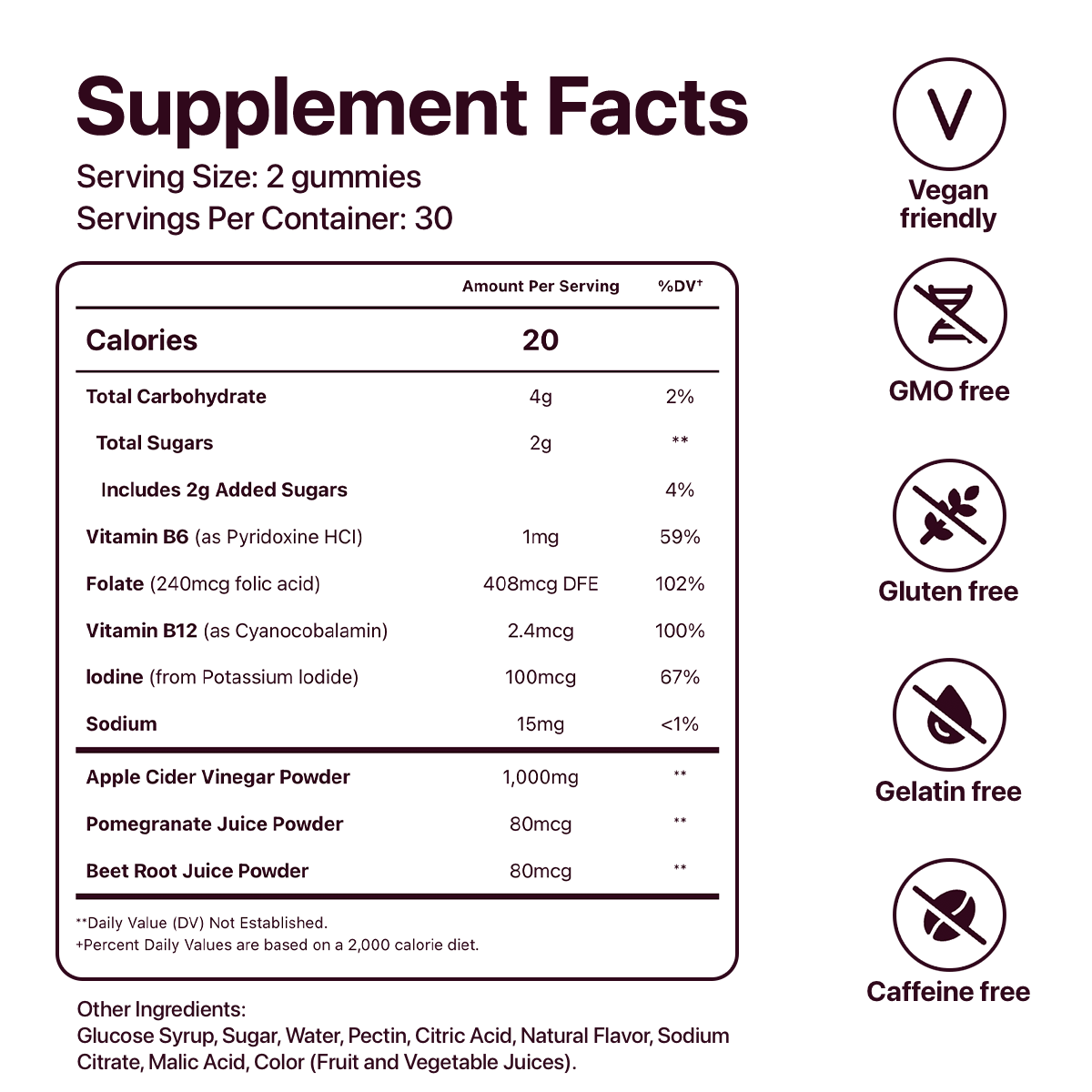 Convenient, innovative, and delicious. These gummies deliver apple cider vinegar benefits and b-vitamin benefits to help your gut be at its best.*