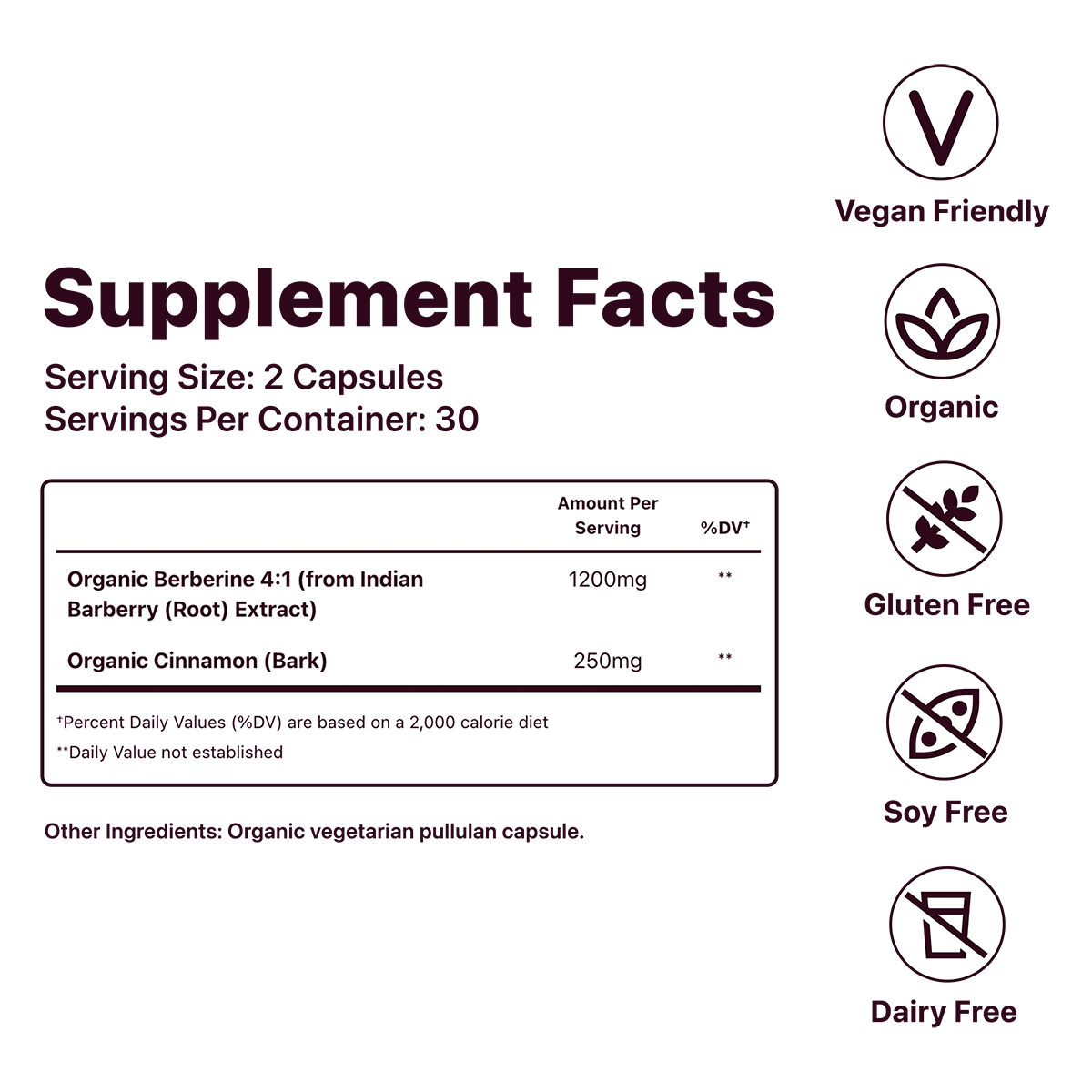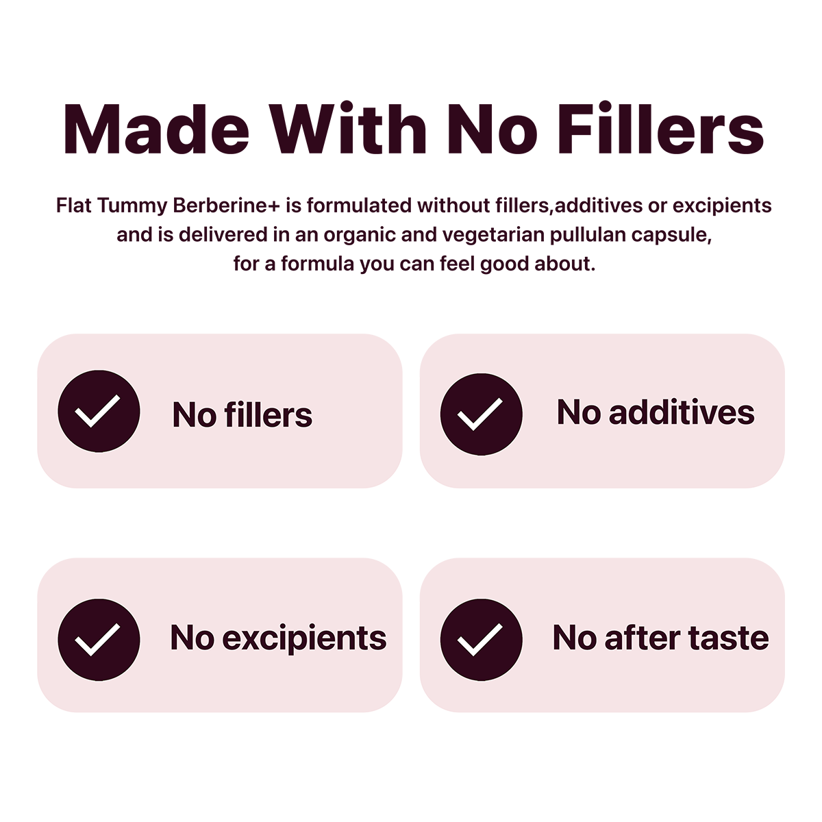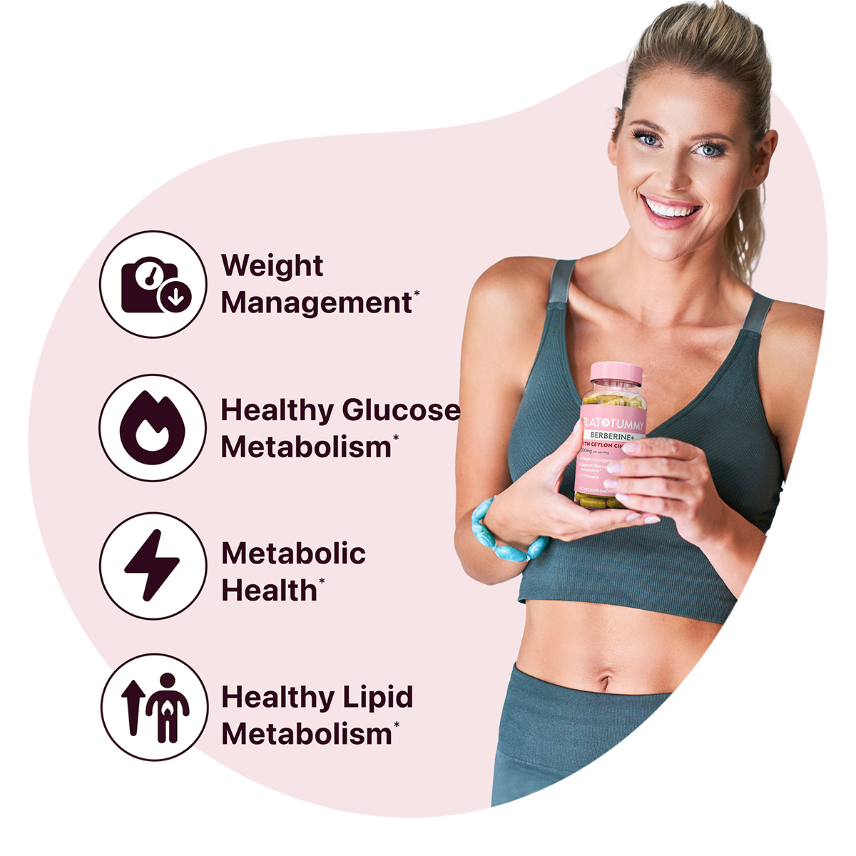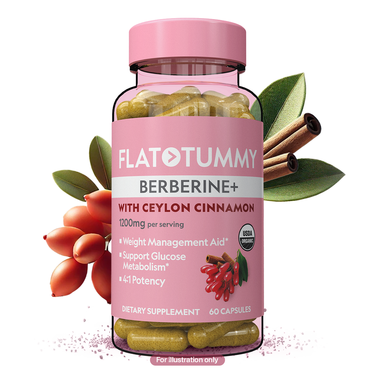 Flat Tummy Berberine+ supplement is packed with 1,200 mg of 4:1 berberine extract and enhanced with 250 mg of ceylon cinnamon per serving. They work to support: