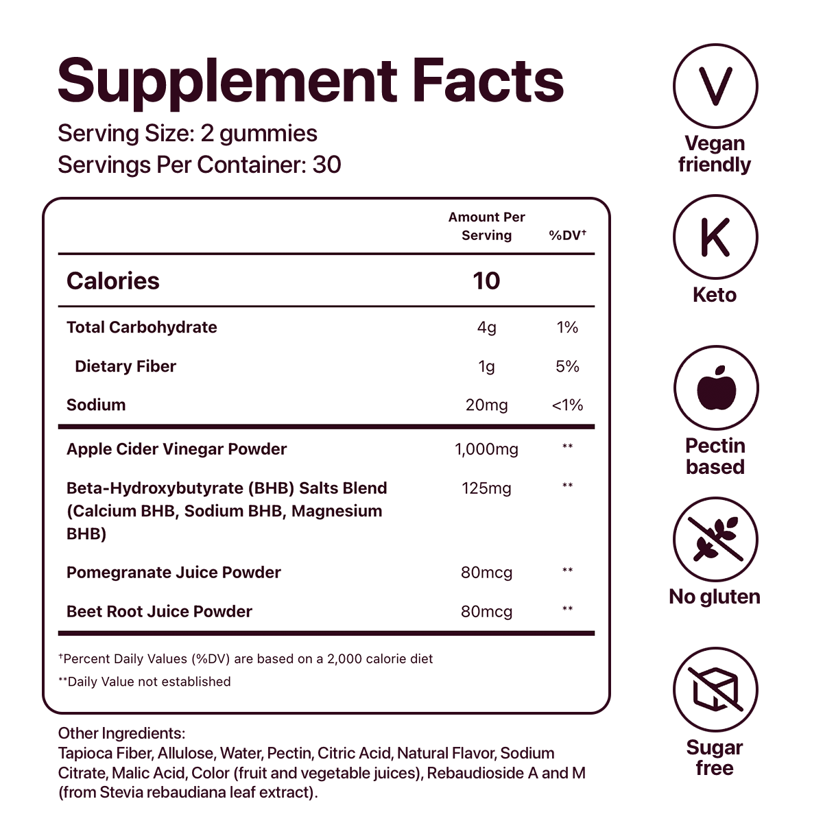 An advanced keto support formula with specialized BHB salts blend. Great tasting gummies to support your ketogenic lifestyle, and promote wellness from within.*